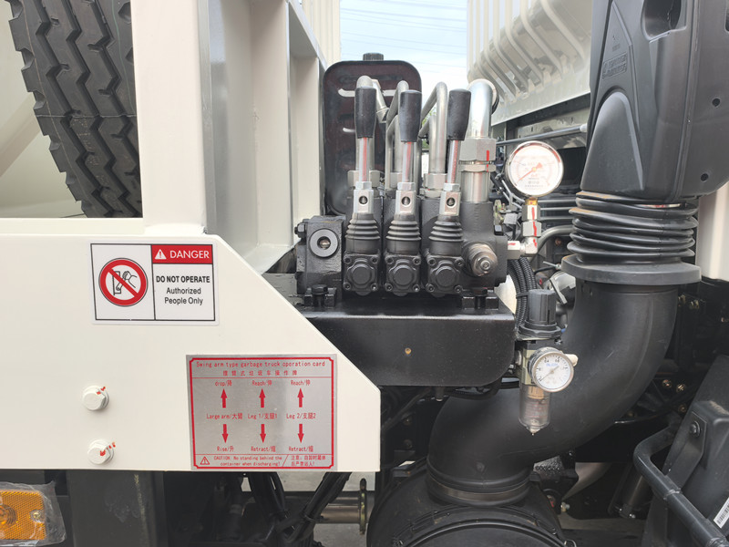 HOWO 스윙암 쓰레기 수거차는 섀시, 유압 시스템, 스윙암 메커니즘 및 쓰레기통으로 구성됩니다. 운전자는 작동 중 유압 시스템을 조작하여 스윙암을 구동합니다. 스윙암 앞쪽의 고리가 쓰레기통의 걸쇠에 걸려 쓰레기통을 플랫폼 위로 부드럽게 들어 올려 단단히 고정합니다.