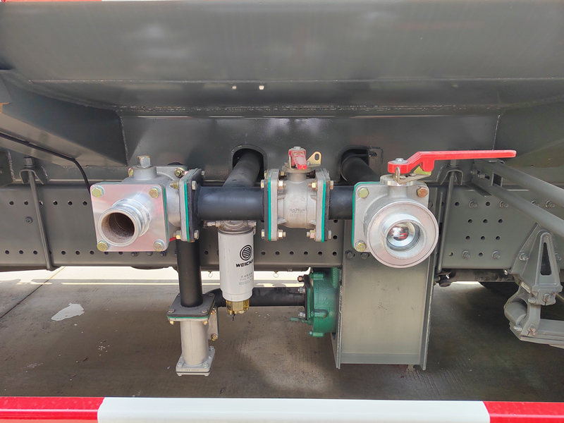 작동 중에는 엔진이 PTO를 통해 워터 펌프를 구동하여 탱크에서 물을 끌어올려 파이프를 통해 다양한 분사 위치로 공급합니다.