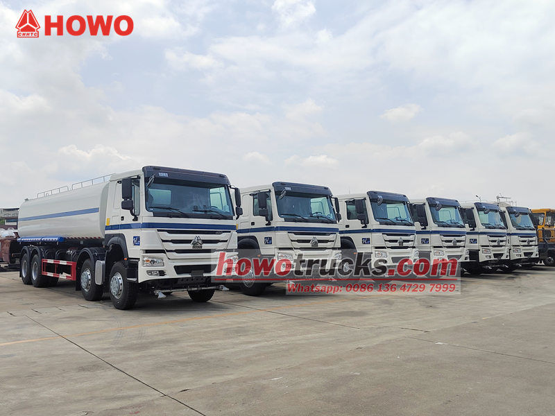 시노트럭 HOWO 8x4 25,000리터 물탱크 트럭은 도로, 광장, 정원, 건설 현장 등에 물안개를 분사하거나 세척하는 데 사용되는 특수 차량입니다. 이 차량은 주로 물탱크, 스프링클러 펌프, 분사 시스템 및 제어 장치로 구성됩니다. 먼지 억제, 냉각, 조경, 소방 등 다양한 용도로 활용될 수 있습니다.그만큼 HOWO 8x4 물탱크 트럭 전방 분사, 후방 분사, 측면 분사 및 고압 물대포를 장착하여 다양한 분사 방식과 넓은 살수 범위를 제공합니다. 차량의 자가 흡입 및 자가 배수 기능은 물 수집을 용이하게 하여 도시 위생, 정원 관리, 건설 현장 분진 제어 등 다양한 작업 환경에 적합합니다.  HOWO 8x4 물탱크 트럭은 다음과 같이 작동합니다. 이 트럭은 섀시, 탱크, 워터 펌프, 동력 인출 장치(PTO), 배관 시스템 및 분무 장치로 구성됩니다.●작동 중에는 엔진이 PTO를 통해 워터 펌프를 구동하여 탱크에서 물을 끌어올려 파이프를 통해 다양한 분사 위치로 공급합니다.●차량 전면 하단에 위치한 전방 노즐은 부채꼴 모양으로 물을 분사하여 도로 표면의 먼지와 침전물을 효과적으로 씻어냅니다. 차량 후면에는 후방 분사 시스템이 설치되어 도로 표면에 물을 고르게 분산시켜 먼지를 줄이고 습도를 유지합니다. 양쪽 측면의 스프링클러는 도로변 녹지대에 물을 공급하며, 높은 위치에 설치된 스프링클러는 키가 큰 나무와 식물에 물을 주는 데 적합합니다.●HOWO 물탱크 트럭은 압력과 노즐을 조절할 수 있는 고압 물대포를 장착하여 장거리 청소가 가능하며, 비상시 소방 작업에도 도움을 줄 수 있습니다.  1. 신뢰할 수 있는 구조와 유연한 용량HOWO 8x4 물탱크 트럭의 탱크 본체는 고품질 탄소강판으로 제작되었으며, 내부에 파도 방지 칸막이가 설치되어 강도를 높이고 물 출렁임을 효과적으로 줄여 주행 안정성과 안전성을 확보합니다. 탱크 용량은 3m³의 소형 모델부터 40m³ 이상의 대형 차량까지 고객의 요구에 맞춰 유연하게 맞춤 제작이 가능하여 다양한 작업 환경에 필요한 물을 공급할 수 있습니다. 트럭의 견고한 섀시는 도심 및 교외 도로뿐 아니라 다양한 작업 환경에도 적합합니다.  2. 다양한 분무 ​​시스템HOWO 8x4 살수차는 전면, 후면, 측면, 고가 살수 장치 등 다양한 살수 장비를 갖추고 있어 종합적인 기능을 제공합니다. 차량 전면 하단에 위치한 전면 노즐은 부채꼴 모양으로 물을 분사하여 도로 표면의 진흙, 모래, 먼지를 고압으로 효과적으로 씻어냅니다. 후면 살수 시스템은 도로 표면에 물을 고르게 분사하여 냉각 및 먼지 저감 효과를 제공합니다. 측면 노즐은 도로 양쪽의 녹지대에 물을 줄 수 있으며, 고가 살수 장치는 키가 큰 나무와 식물에 물을 주는 데 적합합니다. 또한, 사거리가 길고 각도 조절이 가능한 고압 물대포를 장착하여 원거리 세척은 물론 비상시 소방 작업에도 활용할 수 있습니다.  3. 편리한 작동 및 확장된 기능시노트럭 8x4 물탱크 트럭은 자체 흡입 및 배수 기능을 갖추고 있어 연못과 같은 자연 수원에서 신속하게 물을 끌어올릴 수 있어 유연하고 효율적인 작업이 가능합니다. 운전석 안팎에 위치한 조작부를 통해 운전자는 다양한 위치에서 분사 모드를 손쉽게 전환할 수 있습니다. 분진 억제 분무기, 동절기 부동액 시스템, 지능형 물량 모니터링 시스템 등의 옵션 사양을 추가하여 활용도를 더욱 확장할 수 있습니다. 뛰어난 적응성 덕분에 도심 도로 청소부터 건설 현장 분진 제어, 조경 관리까지 다양한 분야에서 없어서는 안 될 필수 장비입니다.