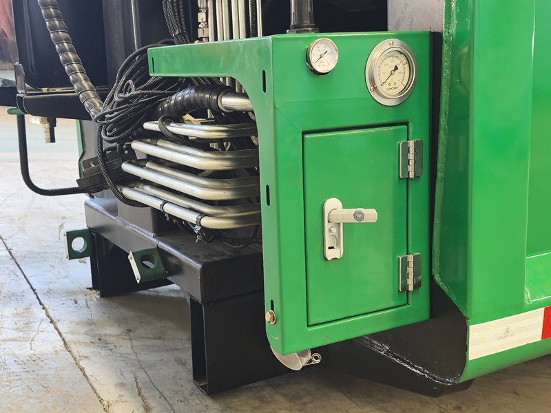 ●후방 로더식 다짐기의 본체는 사용 및 유지보수의 편의성을 고려하여 설계되었습니다. 각 유압 연결부, 실린더 및 가이드 레일에 쉽게 접근할 수 있어 유지보수 및 교체가 용이합니다.