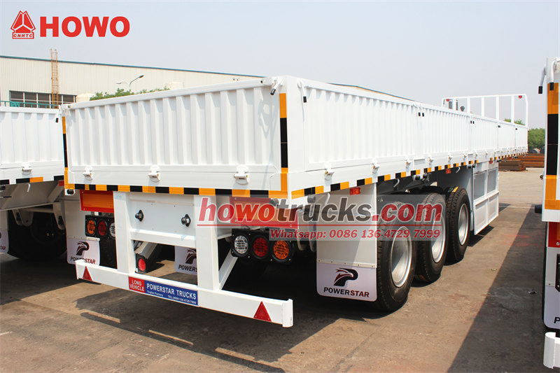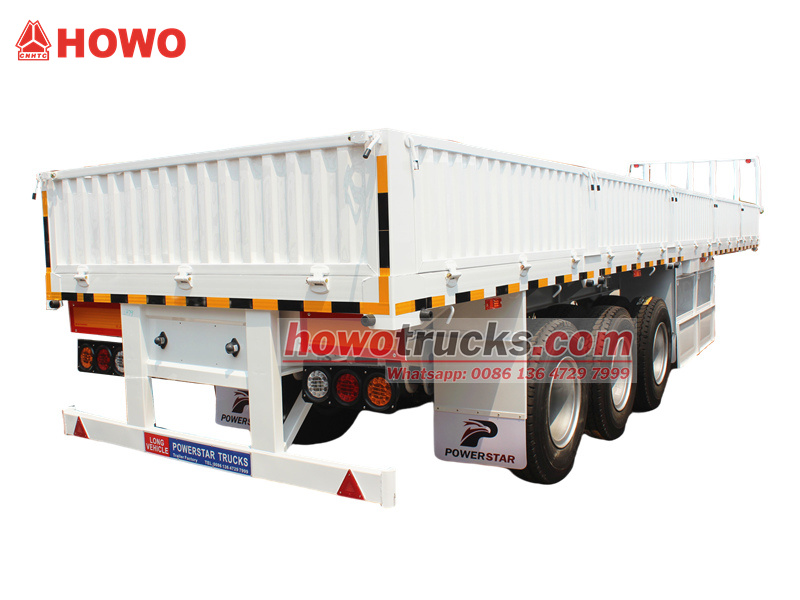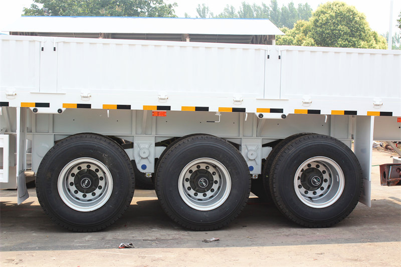 CS 트럭 3축 드롭사이드 세미 트레일러 이 차량은 최대 45톤의 적재 용량을 갖추고 있어 중장거리 중화물 및 벌크 화물 운송에 널리 사용되며, 활용도가 매우 높습니다. 섀시 빔은 고강도 Q345B 강철로 제작되었고, FUWA 13톤 차축 3개와 12R22.5 타이어 12개가 장착되어 있습니다. 중장거리 화물 운송 차량으로 선호되는 모델입니다.