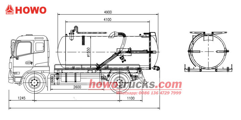 ➤300마력 Howo 폐수 흡입 트럭은 콤팩트한 구조, 간편한 조작, 강력한 흡입력, 뛰어난 밀폐성 및 높은 작업 효율을 특징으로 합니다.
