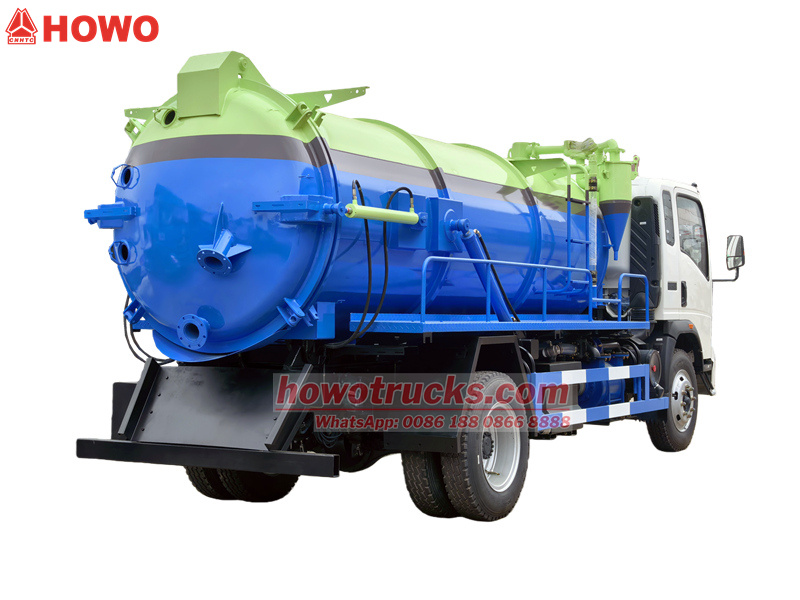 표준 구성 | 점검창, 배출 밸브, 청소 장치, 5미터 길이의 흡입관, 유수분리기, 오버플로우 밸브 등이 장착되어 있습니다. 실린더 진공 탱크는 유압식으로 40~45도까지 들어 올릴 수 있습니다. 후면 도어는 유압식으로 열고 닫을 수 있습니다. | |