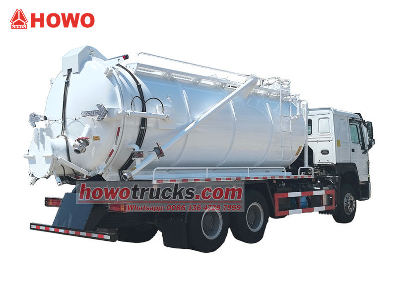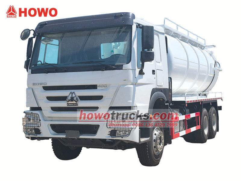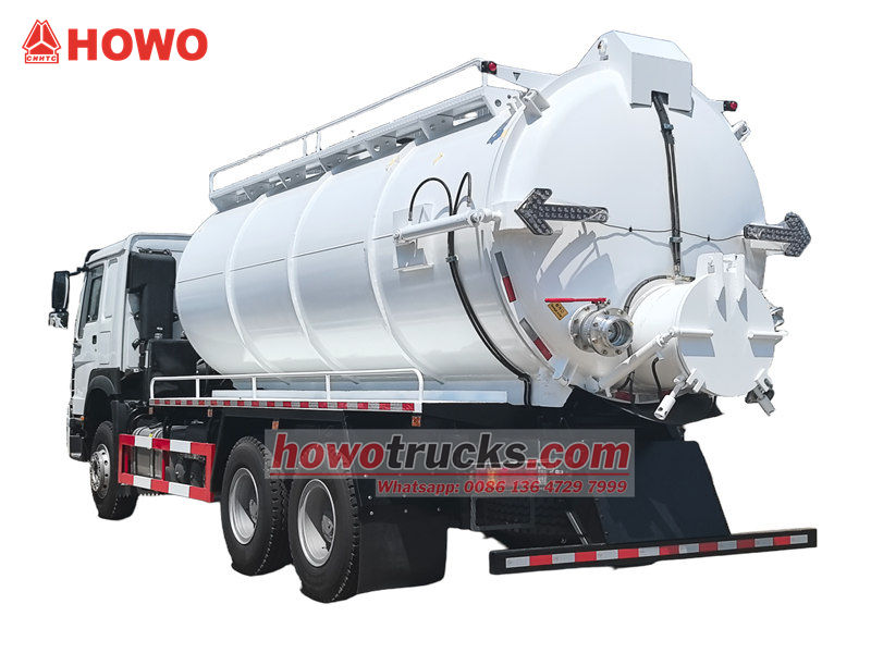 2x13000Howo 20㎥ 진공 흡입 펌프 트럭은 오물, 슬러지, 하수 등을 청소하고 운반하도록 설계된 특수 차량입니다. 도시 위생, 산업 및 광업 기업, 주거 단지 관리 등 다양한 분야에서 널리 사용됩니다.