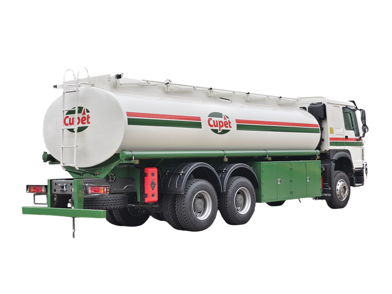 13000+13000CS 트럭에서 제조한 HOWO 연료 탱크 트럭은 HOWO 6×4 섀시, 탱크 본체, 파이프라인 시스템 및 급유 장비로 구성됩니다. 주로 등유, 휘발유, 경유 등의 연료 운송에 적합하도록 설계되었습니다. 탱크는 20,000리터 용량으로 고강도 탄소강판으로 제작되었으며, 운송 중 액체 충격을 최소화하기 위해 내부에 종방향 및 횡방향 파동 방지 칸막이가 용접되어 있습니다. 탱크는 두 개의 독립적인 구획으로 나뉘어 있어 두 종류의 연료(예: 경유와 휘발유)를 동시에 운송하고 분리하여 배출할 수 있습니다. 유럽 표준 맨홀 뚜껑, 비상 차단 밸브, 유량 60m³/h의 연료 펌프 등 다양한 안전 장치를 갖추고 있습니다.