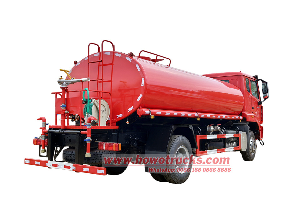 11500The Howo 4x2 drive water delivery tanker bowser uses a Sinotruk NX series chassis and is specifically developed for the right-hand drive market. The vehicle is equipped with a Sinotruk high-efficiency powertrain and a 12-cubic-meter large-capacity carbon steel tank, a high-flow water pump, and features front spray, rear side spray, high-pressure water gun, and hose reel. It can be used for road washing, dust suppression, garden irrigation, and emergency firefighting.