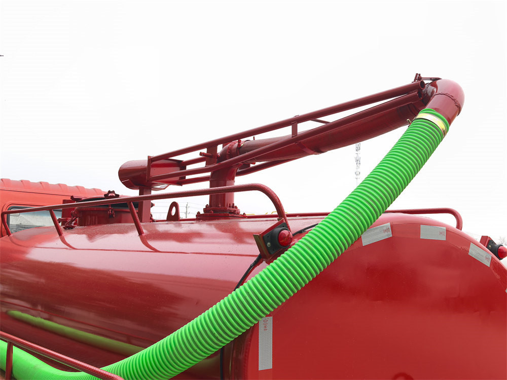 • 탱크: 4 세제곱미터 탄소강 탱크 ≥ 두께 4mm의 재질에 부식 방지 및 녹 방지 코팅 처리를 하여 수명을 연장했습니다. 상단에는 6미터 길이의 접이식 흡입 붐이 장착되어 있어 다양한 각도로 작업할 수 있습니다. 후면에는 배출 밸브가 설치되어 있어 중력식 또는 압축 공기식 배출이 가능합니다.