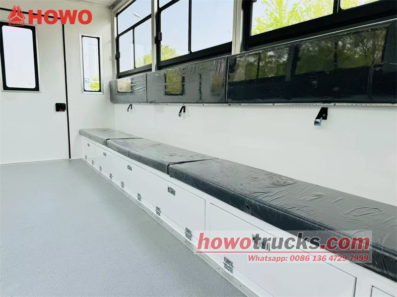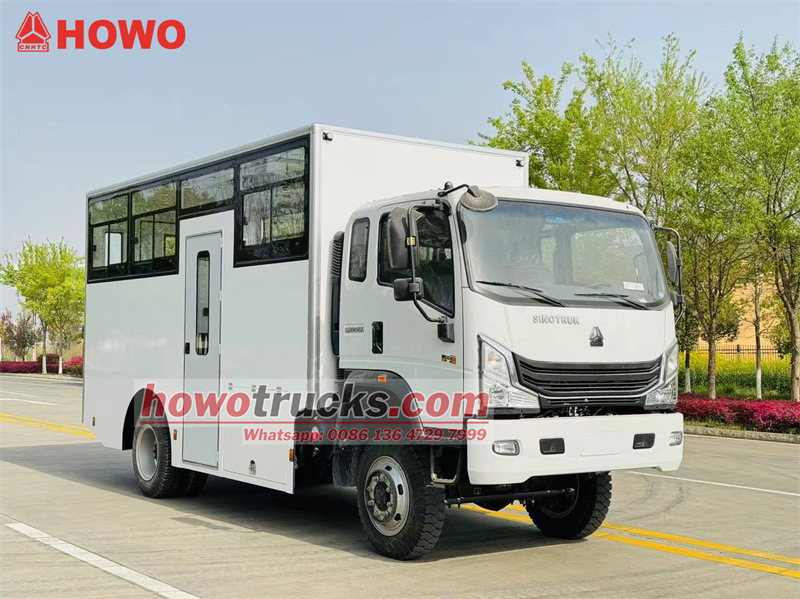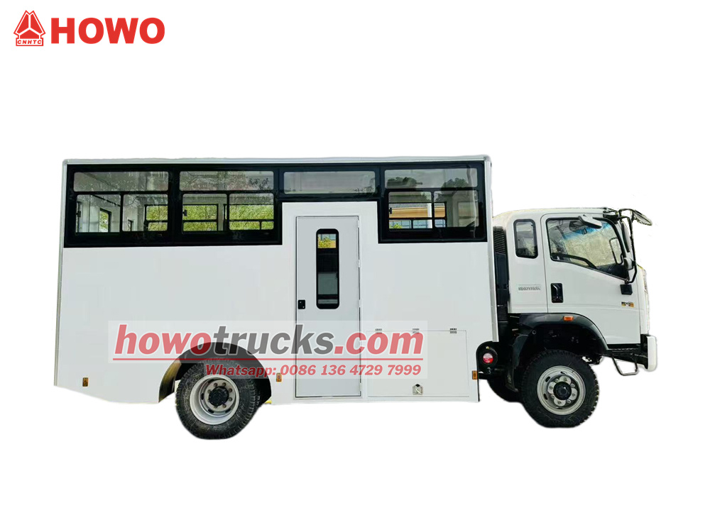 HOWO 4x4 사륜구동 병력 수송 트럭은 HOWO 1880열 반사륜구동 경트럭 섀시를 기반으로 개조되었으며, 휠베이스는 3360mm이고 Weichai WP3NQ140E50 엔진과 WLY6G120 변속기가 장착되어 있습니다. 상부는 2열의 긴 좌석이 배치된 박스형 구조로 15명의 병사를 수용할 수 있습니다. 차량 양쪽 측면에는 긴 창문이 있고, 트렁크 도어에는 작은 창문이 있습니다. 승하차를 위해 차량 우측에는 외문이, 트렁크 도어에는 양문이 있습니다. 이 차량은 에어컨을 갖추고 있습니다.