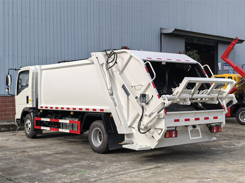 Tank capacity can be customized그만큼 Howo 6륜 8cbm 쓰레기 압축기 이 차량은 도시 위생 관리를 위해 특별히 설계된 고효율 특수 목적 차량입니다. 전문적으로 설계된 상부 구조는 8m³의 적재 용량을 자랑하며, 후방에 장착된 쓰레기통 적재 장치를 통해 110L 및 240L 표준 쓰레기통을 자동으로 적재할 수 있습니다. 조작 편의성 또한 큰 장점입니다. 통합된 CAN-BUS 제어 시스템을 통해 운전자는 차량 내부, 운전석 또는 후방에서 전자 제어 박스와 유압 밸브를 이용하여 적재, 압축, 하역의 모든 과정을 쉽고 안전하게 효율적으로 수행할 수 있습니다. 도시 거리, 주거 지역, 상업 지역, 학교 등 다양한 장소에서 매일 쓰레기 수거에 적합하며, 특히 좁은 도로와 인구 밀집 지역의 작업 현장에 매우 유용합니다.