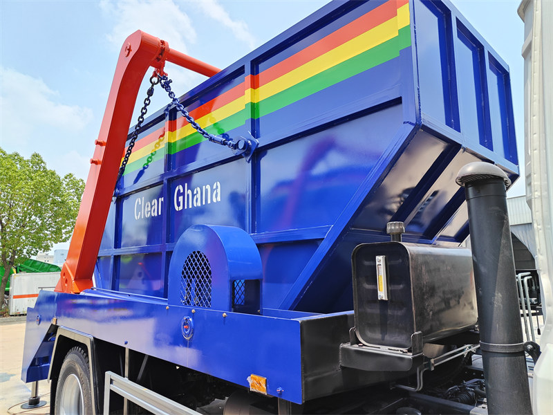 Howo 6x4 롤온롤오프 쓰레기 수거 트럭은 내구성이 뛰어난 8mm 두께의 플랫폼을 갖추고 있으며, 무거운 컨테이너를 안전하게 올리고 내릴 수 있도록 강력한 스윙 암이 장착되어 있습니다. 스킵 데크 플랫폼 후면에는 유압 후크가 있어 컨테이너를 잠그거나 해제할 수 있으며, 이를 통해 컨테이너를 고정된 위치에 내려놓고 쓰레기를 수거하거나, 쓰레기 처리장에서 쓰레기를 배출할 수 있습니다. 수동 유압 제어 밸브와 전기 제어 박스가 모두 장착되어 있어 더욱 효율적이고 편리한 사용이 가능합니다.