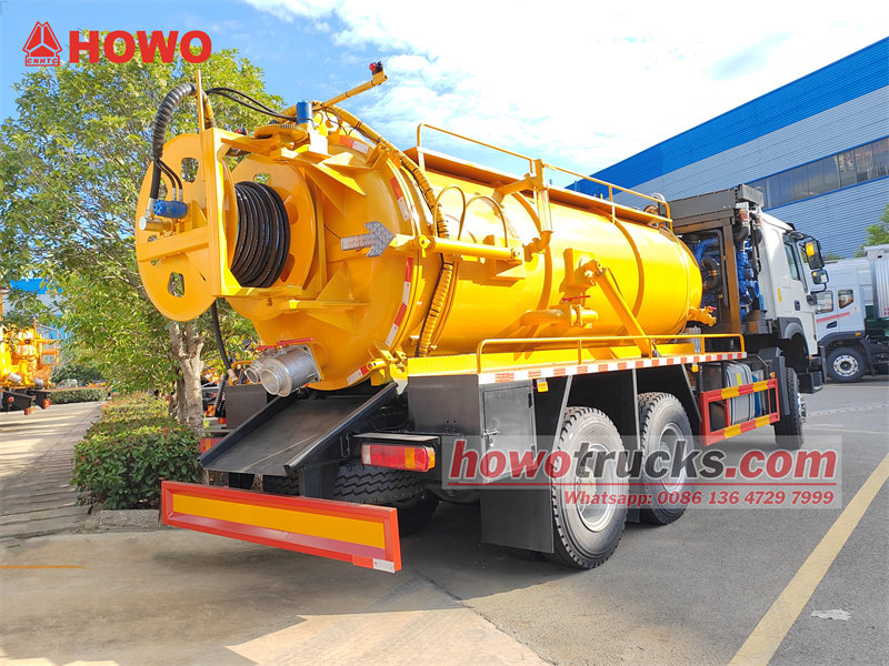그만큼Howo 6x6 복합 진공 분사 차량 이 장비는 도심 하수관 준설, 하수 제거 및 고압 세척 작업에 적합하도록 설계되었습니다. 400마력의 웨이차이 엔진과 10단 변속기를 장착하여 강력한 동력을 제공합니다. 또한, 10m 길이의 통합형 굴착기를 갖추고 있습니다.³ 하수 탱크와 2m³ 각각 독립된 구획으로 나뉜 깨끗한 물 탱크를 갖추고 있습니다. SK-15 물 순환 진공 펌프, 고압 세척 펌프 및 릴을 장착하여 하수 흡입, 배수 및 배관 세척 작업을 효율적으로 수행합니다. 이 차량은 하수 흡입, 배수 및 고압 세척 기능을 통합하여 복잡한 도로 조건과 고강도 작업에 적합하며, 전천후 주행 능력과 효율적인 성능을 제공합니다.