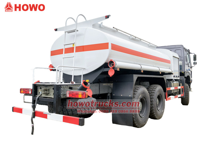 13000*2The Howo 6x6 offroad 12cbm wildland fuel bowser truck is the city special refueling tank truck. The Howo fuel tanker equipped with a WD model 6 cylinder in-line water-cooled turbocharged intercooled diesel engine with a maximum output of 400HP. The gearbox is 10 front speeds and 2 rear speed, equipped with a reinforced diaphragm clutch. The Howo fuel tanker has strong power and good controllability, suitable for various road conditions oil transportation work.