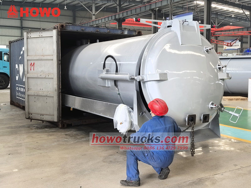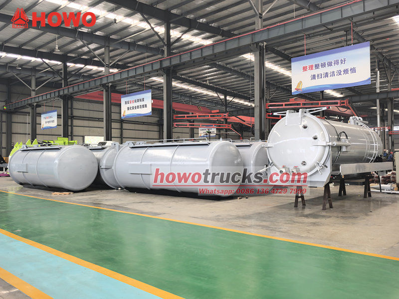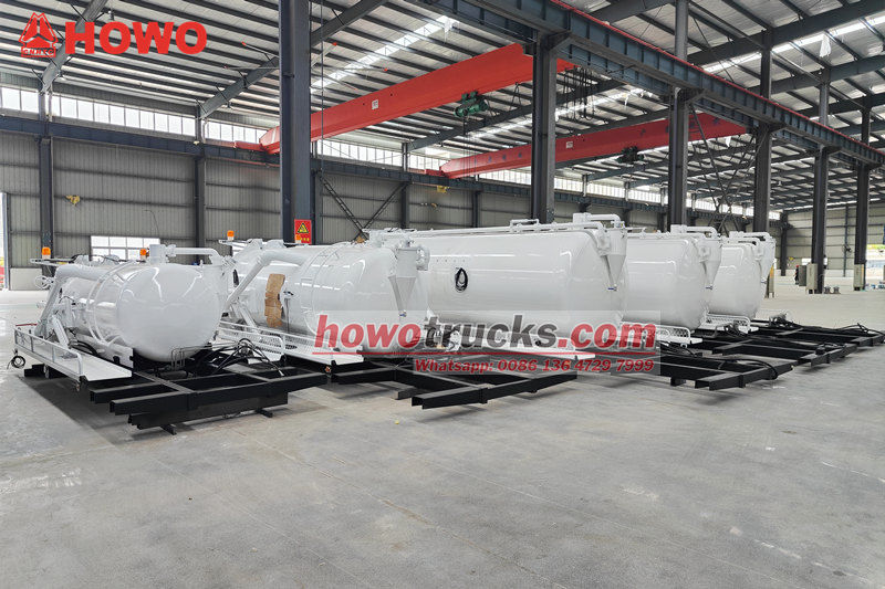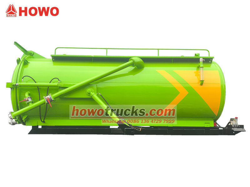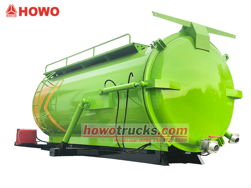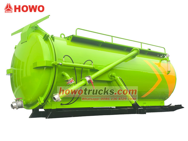 Howo 8cbm 오수 흡입 탱크 트럭 차체 (8cbm 진공 흡입 펌프 트럭 키트, 8,000리터 진공 탱크 트럭 상부 차체, 8cbm 진공 하수 흡입 트럭 키트, 하수 처리 탱크 트럭 상부 차체 키트, 8cbm 진공 탱크 트럭 상부 구조, 슬러지 진공 펌프 탱크 트럭 키트, 진공 흡입 트럭 상부 차체 키트 등으로도 불림) 차체에 장착하여 오염된 물과 같은 액체를 청소하고 모으는 데 사용됩니다. 하수구, 오수 구덩이, 배수로 등을 청소하는 데 적합합니다.