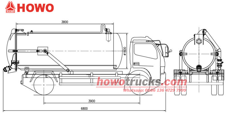 ●Howo 8cbm 오수 흡입 탱크로리는 고효율 진공 펌프 시스템을 탑재하여 강력한 부압 흡입력을 발생시켜 하수, 슬러지, 기름과 같은 고액 혼합물을 탱크로 신속하고 완벽하게 흡입합니다.