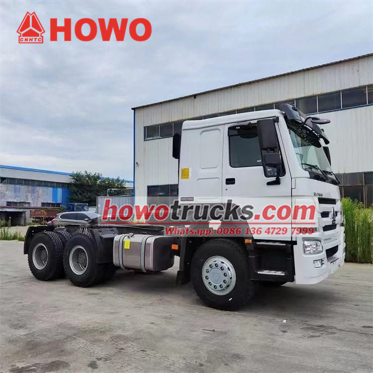 2025년형 신형 시노트럭 HOWO 6X4 트랙터 트럭, HOWO 76 스탠다드 캡 채택, 침대 1개 및 에어컨 장착. 엔진: CNHTC WD615.47 371마력, 변속기: HW19710, 전진 10단 & 후진 2단. 유로 2 배출가스 기준 충족, 견고한 섀시, 50mm/90mm 5륜 커플링(JOST 브랜드). HOWO 트랙터 트럭 섀시는 3중 강판 보강으로 내구성이 뛰어나며, 전축 9톤, 후축 16톤의 적재 용량을 갖췄습니다.