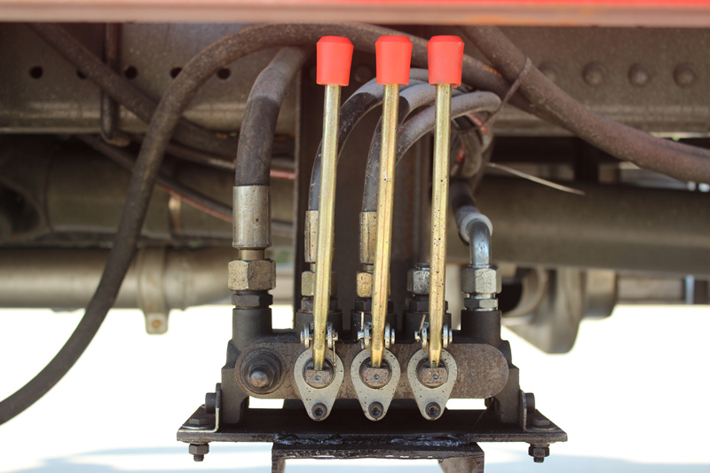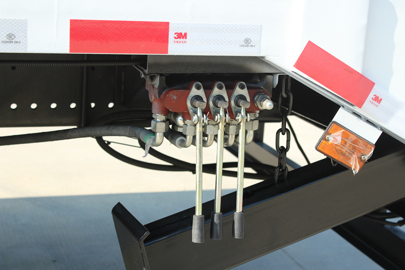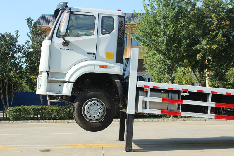 ◇유압식 아웃리거: 이 차량은 전면에 대용량 유압식 아웃리거 2개를 장착하고 있습니다. 적재 및 하역 작업 시 이 아웃리거를 내려 차량 전면을 안정적으로 지지하여 차량 앞부분의 기울어짐을 방지하고 안전하고 원활한 적재 및 하역 작업을 보장합니다.