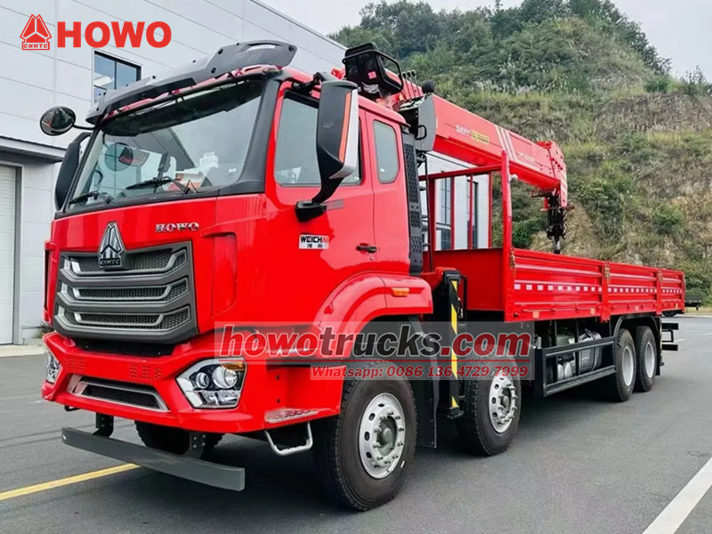 XCMG crane, UNIC crane, knuckle boom crane is optionalHOWO NX 8×4 트럭 탑재형 크레인은 인양 및 운반 기능을 결합한 다기능 중장비 차량입니다. 최대 16톤의 인양 용량과 40톤미터의 인양 토크를 자랑하는 Palfinger SPS40000 크레인을 탑재하고 있습니다. 5단 텔레스코픽 붐은 최대 19미터까지 확장되며, 360도 회전 기능을 통해 다양한 인양 작업 환경에서 유연한 운용이 가능합니다. HOWO NX 시리즈 섀시를 기반으로 제작된 이 장비는 273kW 출력의 9.7리터 디젤 엔진과 10단 변속기, 그리고 공기 제동 시스템을 탑재하여 복잡한 작업 환경에서도 안정적인 성능을 보장합니다.