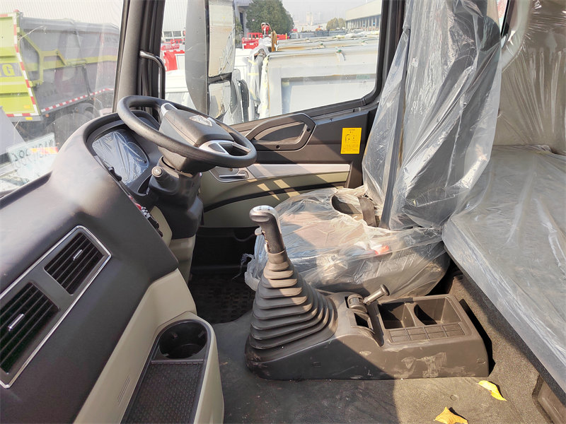 시노트럭 호우(HOWO) 우측 핸들 중형 섀시, 호우 NX 캡(4점식 서스펜션, 에어컨(난방 및 냉방), 에어 서스펜션 시트, 중앙 잠금 장치, 파워 윈도우, 리모컨 키 포함).