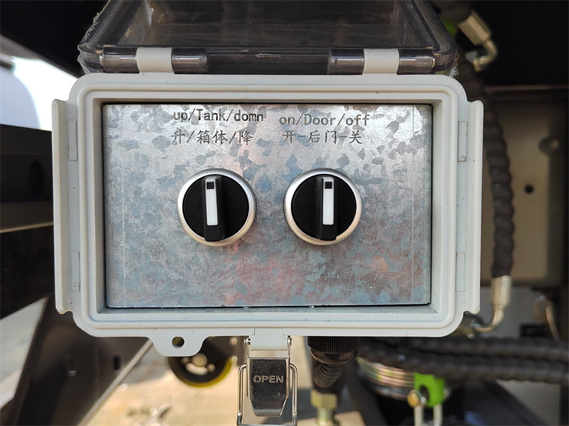 탱크의 후면 도어에는 유압식 핀 잠금 장치가 장착되어 있습니다. 이 시스템은 원터치로 도어를 자동으로 열고 닫고 잠글 수 있어 폐기물 및 하수 누출을 효과적으로 방지하는 안전한 밀폐를 보장합니다.