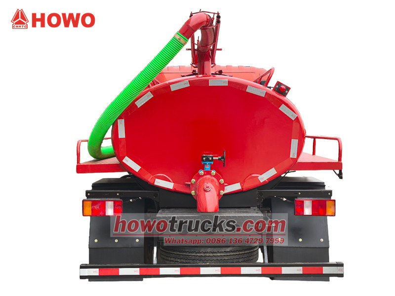 Howo 변기 흡입 트럭 6륜 5000L (Howo 5,000리터 단축 정화조 트럭, Howo 5,000리터 진공 탱크 트럭, Howo 5cbm 정화조 펌프 트럭, Howo 슬러지 진공 펌프 탱크 트럭, Howo 슬러지 진공 펌프 탱크 트럭, Howo RHD 하수 처리 탱크 트럭 등으로도 불림) 이 차량은 하수, 배설물, 슬러지 등을 청소하고 운반하는 데 사용되는 특수 차량으로, 진공 흡입, 밀폐 운송, 자동 배출 등의 기능을 갖추고 있습니다.
