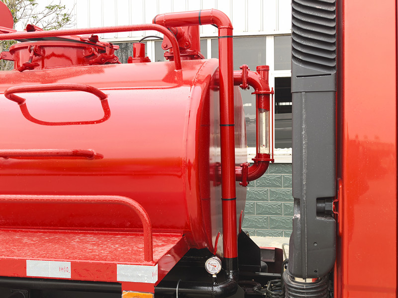 ●이 트럭은 유압식 리프팅 장치를 갖추고 있어 탱크를 기울여 폐수 배출 속도를 더욱 높일 수 있습니다. 배출구는 하수관이나 하수 처리 시설에 쉽게 연결할 수 있도록 설계되었습니다.