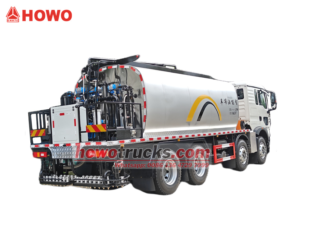 17500(2 axles)그만큼 HOWO TX 이동식 아스팔트 살포기 이 차량은 도로 유지보수를 위해 특별히 설계되었습니다. HOWO 8x4 350마력 중장비 섀시를 기반으로 제작된 이 차량은 유화 아스팔트와 열 아스팔트 모두 사용 가능한 18m³ 용량의 다기능 아스팔트 탱크를 갖추고 있습니다. 이탈리아산 G20 디젤 버너와 정밀하고 효율적인 온도 제어를 위한 자동 열유 가열 시스템을 사용합니다. 차량 후면에는 독일 Siemens사의 지능형 시스템을 적용한 36개의 정밀 노즐이 장착되어 최대 6m의 살포 폭과 0.2~3kg/m²의 무단계 살포량 조절 기능을 제공합니다.²이 시스템은 각 노즐의 독립적인 작동을 지원합니다. 차량은 효율적인 가열, 지능형 제어 및 정밀한 살포 기능을 통합하여 고급 도로 건설 및 유지 보수 작업에 적합합니다.