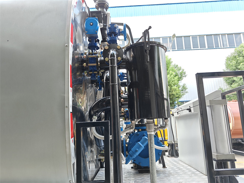2.대형 탱크: 18세제곱미터 용량의 아스팔트 탱크는 유화 아스팔트와 열 아스팔트 모두에 사용 가능하며, 단열성과 내구성을 제공합니다.