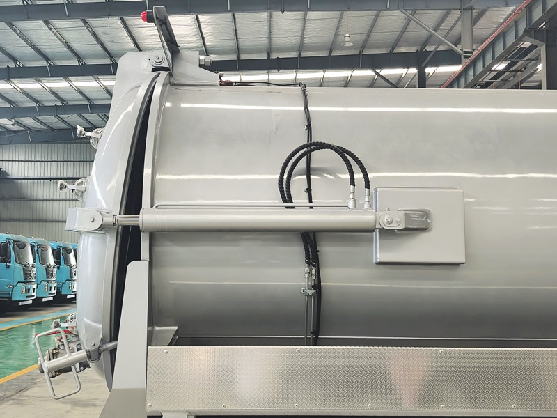 ●이 차량은 탱크 전체를 기울여 내용물을 완전히 배출하고 세척하는 유압식 덤프 시스템을 갖추고 있어 잔류물을 줄이고 내부를 깨끗하게 유지합니다. 전체 공정은 밀폐되어 2차 오염 및 악취 확산을 방지하고 청결하고 위생적인 작업 환경을 보장합니다.