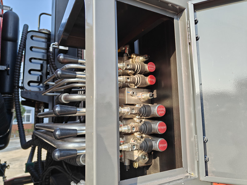 ►편리한 조작과 제어가 가능합니다. 제어 박스는 운전석과 차량 후면에 각각 하나씩 있습니다. 운전석 제어 박스는 밀기 및 하역 작업을 관리하고 작동 모드(자동 또는 수동)를 선택할 수 있도록 하며, 후면 제어 박스는 다짐 및 덤핑 메커니즘을 관리합니다. 조작이 매우 편리합니다.