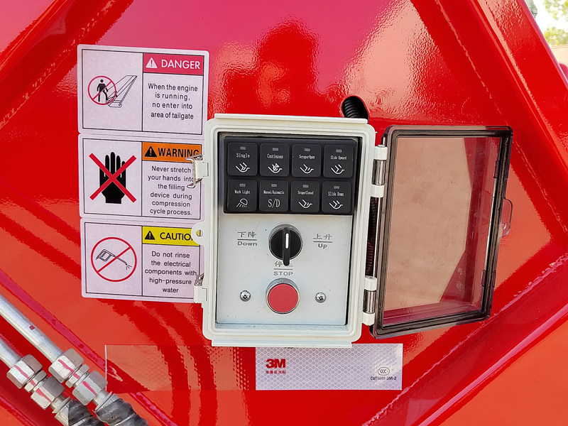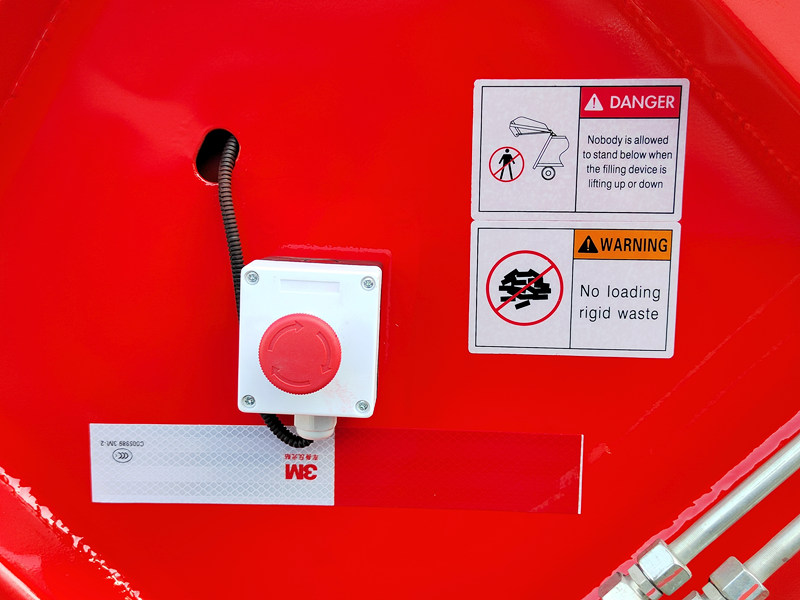 ►특수 설계된 비상 제동 버튼을 사용하면 폐기물 압축 장치를 어떤 상태나 위치에서든 멈출 수 있어 인력과 장비의 안전을 확보할 수 있습니다.