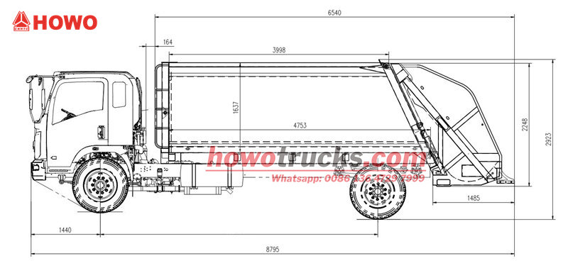 PLC control systemHowo 후방 적재식 폐기물 압축 트럭은 고강도 강철로 제작된 밀폐형 차체와 첨단 유압 압축 시스템을 갖추고 있어, 느슨한 폐기물을 효과적으로 압축하여 한 번에 처리할 수 있는 용량을 크게 늘려줍니다.